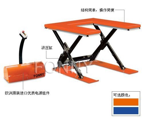 • U型臺面,重型設(shè)計帶超長臺面,專用于托盤搬運(yùn),超低型臺面,不再需要建地下凹坑來安裝;