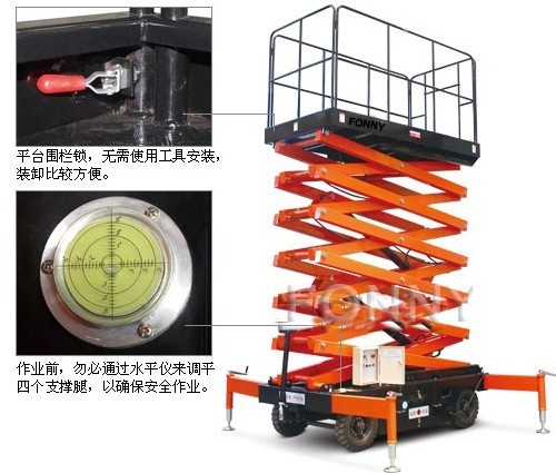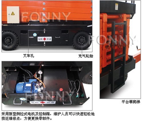 • 平臺升降剪叉部分采用寬截面錳鋼矩形管,使得運行更加平穩、可靠;