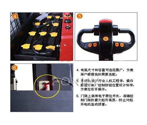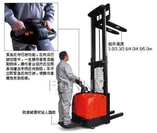 • 緊急反向行駛功能,在向后行駛過程中,一旦操作者背后碰到物體,操作者會自然反應用身體撞擊手柄反向按鈕,車子立即緊急反向行駛,使操作者避免受到傷害。