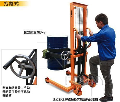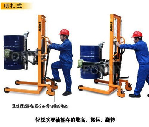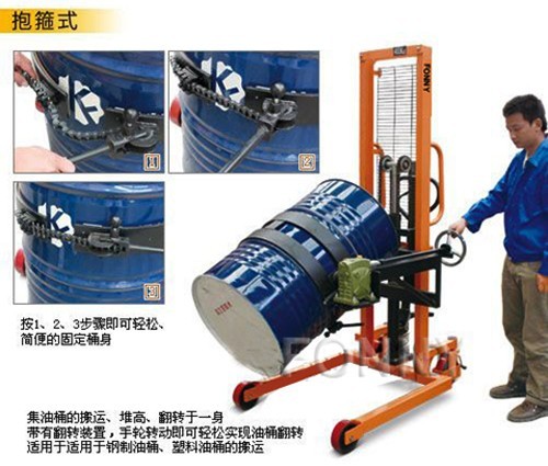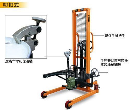 • 帶有翻轉裝置,手輪轉動即可輕松實現油桶翻轉